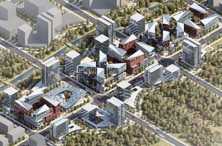 Комплексная проработка застройки, планировок, фасадов и общественных пространств.